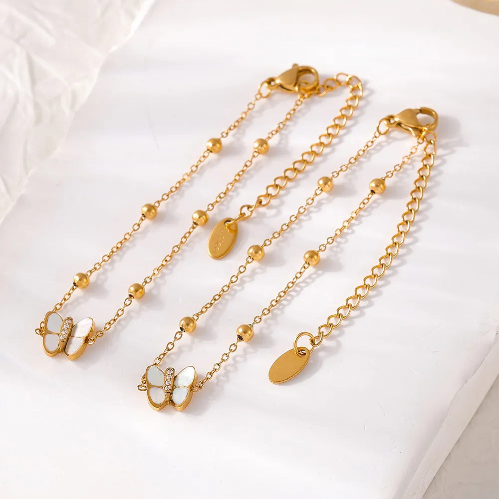 Pulsera de mariposa en blanco y oro, delicada y elegante
