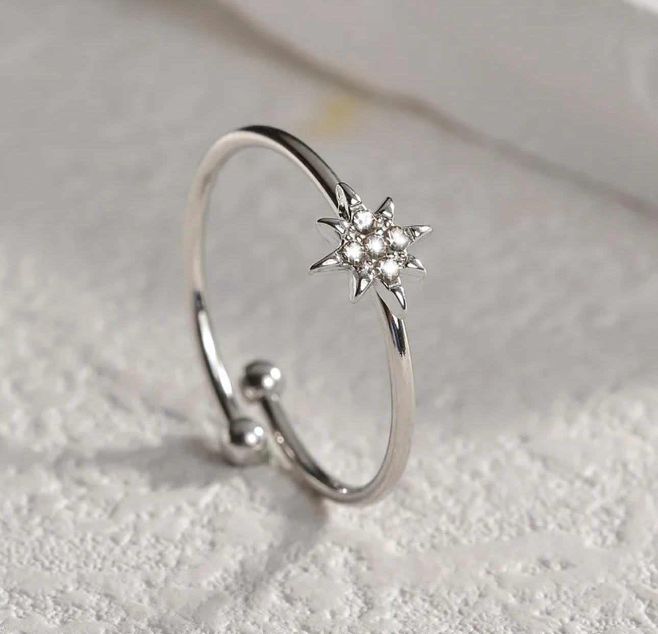 Sortija Dana Star en acero inoxidable dorado con diseño de estrella, elegante y brillante para un toque celestial.