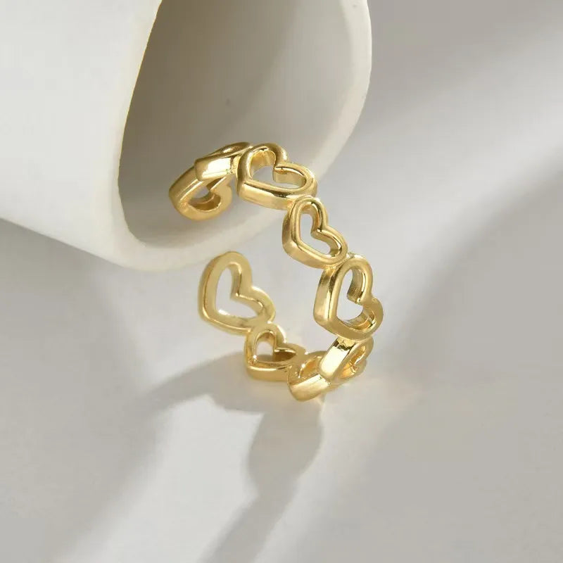 Anillo romántico con diseño de corazones múltiples, simbolizando amor y conexión.