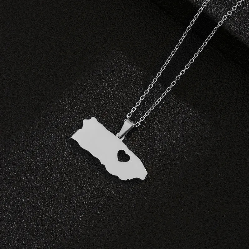 Un collar de PR muestra la silueta de la isla, ideal para llevar un símbolo de orgullo y conexión